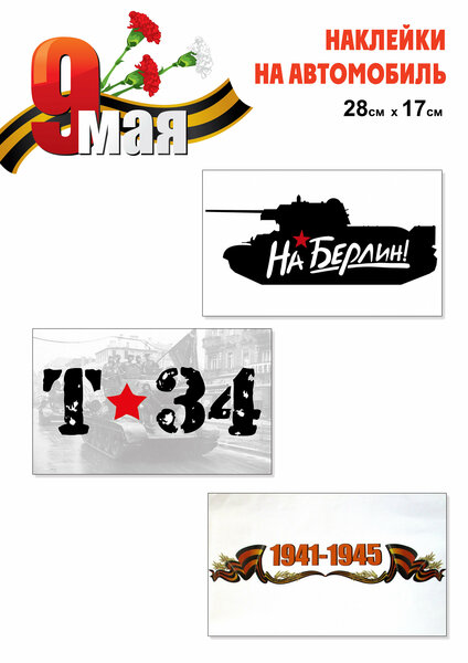 Набор наклеек на автомобиль "9 Мая" от Медный всадник - это патриотичный и яркий аксессуар для вашего автомобиля, который поднимет настроение и напомнит о подвиге дедов и прадедов. Изготовленные из пленки ПВХ, наклейки устойчивы к температурам от +40° до -40°С, обеспечивая их долговечность и сохранность внешнего вида на протяжении всего срока службы. Комплект состоит из трех наклеек размером 28 х 17см. Они могут быть установлены на стекло или кузов автомобиля, а также внутри салона. Благодаря клеевому слою, наклейки легко крепятся на любую гладкую поверхность, не оставляя следов после удаления. Выбирая набор наклеек на автомобиль "9 Мая", вы делаете свой автомобиль более привлекательным и уникальным, а также выражаете свою любовь и уважение к истории и подвигу нашего народа.