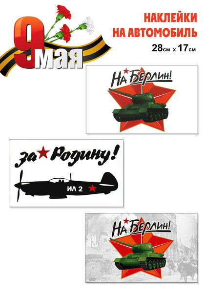 Набор наклеек на автомобиль "9 Мая" от Медный всадник - это патриотичный и яркий аксессуар для вашего автомобиля, который поднимет настроение и напомнит о подвиге дедов и прадедов. Изготовленные из пленки ПВХ, наклейки устойчивы к температурам от +40° до -40°С, обеспечивая их долговечность и сохранность внешнего вида на протяжении всего срока службы. Комплект состоит из трех наклеек размером 28 х 17см. Они могут быть установлены на стекло или кузов автомобиля, а также внутри салона. Благодаря клеевому слою, наклейки легко крепятся на любую гладкую поверхность, не оставляя следов после удаления. Выбирая набор наклеек на автомобиль "9 Мая", вы делаете свой автомобиль более привлекательным и уникальным, а также выражаете свою любовь и уважение к истории и подвигу нашего народа.