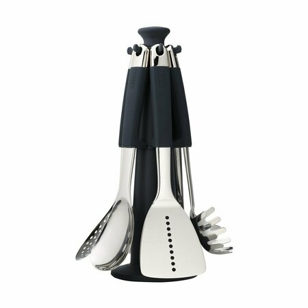 Набор входит в серию кухонных приборов Elevate, разработанную с целью минимизировать беспорядок во время готовки. Каждый прибор оснащён утяжеленной ручкой на подножке, благодаря которой испачканная часть инструмента всегда остается навесу и не касается рабочей поверхности. Вращающаяся подставка имеет нескользящее основание и надежно закрепляется на рабочей поверхности. В набор входит ложка, ложка для спагетти, лопатку-шумовку, ложку-шумовку, дуршлаг, половник. Инструменты можно мыть в посудомоечной машине, а подставку протирать влажной тканью.