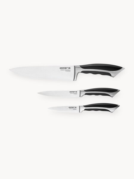 В целом больших недостатков не выявлено. Комментарий:Давно пользуюсь ножами фирмы Polaris, первые ножи приобретались модели Polaris Millennium 3ss, примерно 1 года назад очень хорошая заточка, острые как бритва, в комплекте было 3 ножа, большой шеф нож, средний для нарезки овощей, и маленький для чистки фруктов, ножи цельнолитые, сделаны очень качественно, не гнутся, не ржавеют, моются отлично.