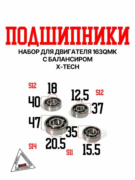 Набор подшипников для двигателя 163QMK с балансиром X-tech