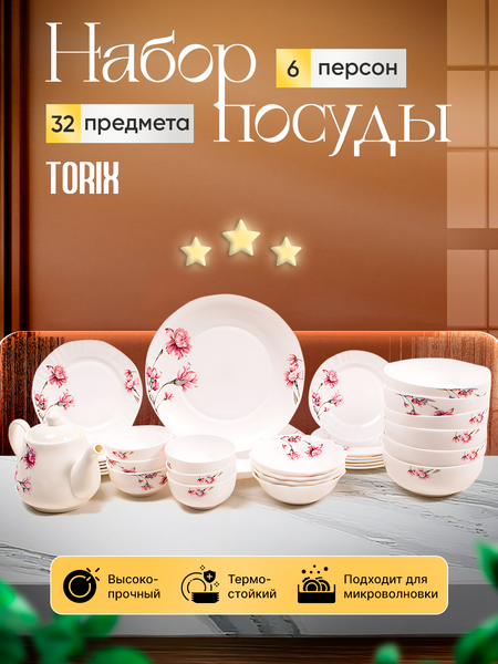 Набор посуды TORIX ELLA, из стеклокерамики на 6 персон, 32 предмета