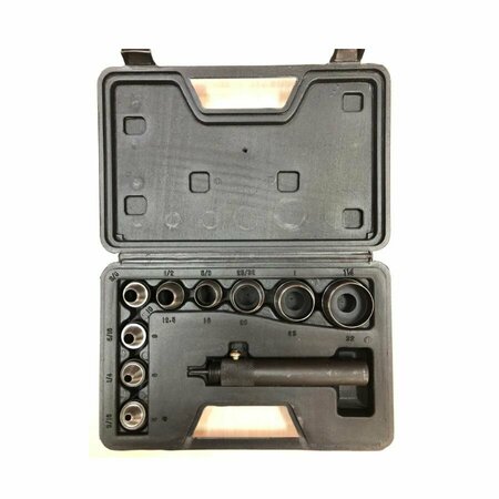 евять сменных насадок для выполнения отверстий следующих размеров: 5 мм (3/16”); 6 мм (1/4”); 8 мм (5/16”); 10 мм (3/8”); 12,5 мм (1/12”); 16 мм (5/8”); 20 мм (25/32”); 25 мм (1”); 32 мм (1-1/4”).Пластиковый кейс для хранения набора.