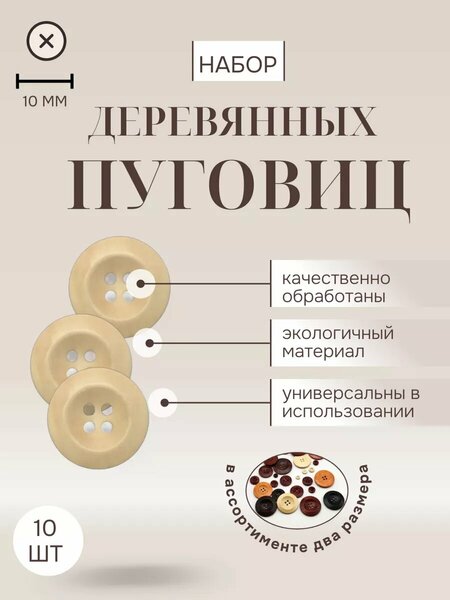 Набор деревянных пуговиц от Marido - это незаменимый элемент в рукоделии и шитье. Эти пуговицы используются для крепления и декорирования одежды, а также для создания уникального стиля домашнего текстиля. Экологичность и безопасность: набор из 10 деревянных пуговиц может быть использован как для взрослой одежды, так и для детской. Он отлично подойдет для рубашек, блузок, детских платьев. Круглые деревянные пуговицы с 4-я отверстиями: диаметр каждой пуговицы составляет 10 мм, что делает их удобными для использования на различных типах одежды. Белый цвет пуговиц: благодаря своему нейтральному цвету, эти пуговицы подойдут для любого стиля одежды и домашнего текстиля. Упаковка из 10 пуговиц: в наборе вы получаете 10 качественных и красивых пуговиц, которые станут отличным дополнением к вашему гардеробу или домашнему текстилю. Выбирая набор деревянных пуговиц от Marido, вы получаете качественный и стильный аксессуар для своего рукоделия и шитья.