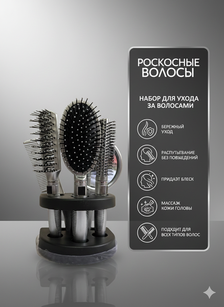 Набор расчесок для волос с зеркалом включает в себя 5 штуки,
