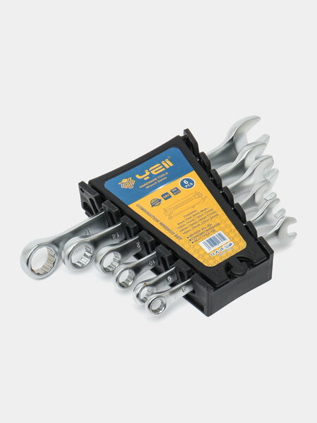 Набор рожково-накидных ключей: функциональность и качество Набор комбинированных ключей: 6 предметов в комплекте Набор рожково-накидных ключей включает в себя 6 комбинированных ключей, которые совмещают в себе возможности рожкового и накидного профилей. Это делает их незаменимым инструментом для выполнения широкого спектра работ, связанных с крепежом. Высококачественная сталь и метод горячей штамповки Ключи изготовлены из хромованадиевой инструментальной стали методом горячей штамповки, что обеспечивает их прочность и долговечность. Этот материал также известен своей устойчивостью к коррозии и износу, что делает ключи надежными и эффективными в использовании. Размеры ключей в наборе варьируются от 8 до 17 мм, что позволяет подобрать оптимальный вариант для выполнения различных задач. Выбирая набор рожково-накидных ключей, вы получаете надежный и функциональный инструмент, который станет незаменимым помощником в вашем арсенале.