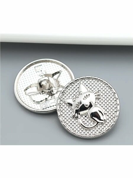 Набор серебристых металлических пуговиц от Marido - это изысканный аксессуар для вашего гардероба. Пуговицы выполнены из качественного металла, что гарантирует их долговечность и устойчивость к износу. Серебристый цвет придает им элегантный и современный вид, который будет гармонично сочетаться с различными цветами и текстурами. Набор состоит из пяти пуговиц, каждая из которых имеет диаметр 15 мм и оснащена отверстием для пришивания. Благодаря этому, пуговицы легко сочетаются с различными видами одежды и аксессуаров. Пуговицы предназначены для использования в декоративных целях, что позволяет вам создавать уникальные украшения и элементы декора для вашего дома или одежды. Выбирая набор серебристых металлических пуговиц от Marido, вы получаете не только стильный аксессуар, но и качественный продукт, который прослужит вам долгое время.