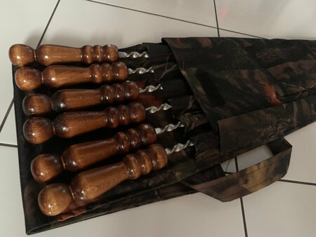 Набор шампуров из нержавеющей стали с деревянной ручкой 6 штук в чехле