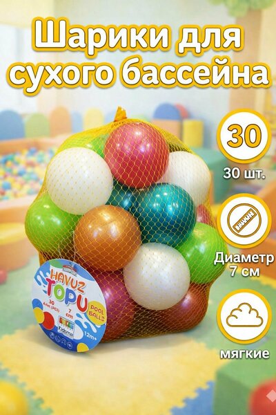 Разноцветные яркие шарики предназначены для наполнения сухого бассейна. А также являются отличным дополнением для игровых центров. Диаметр шарика 7 см, легко моются, плотной структуры.