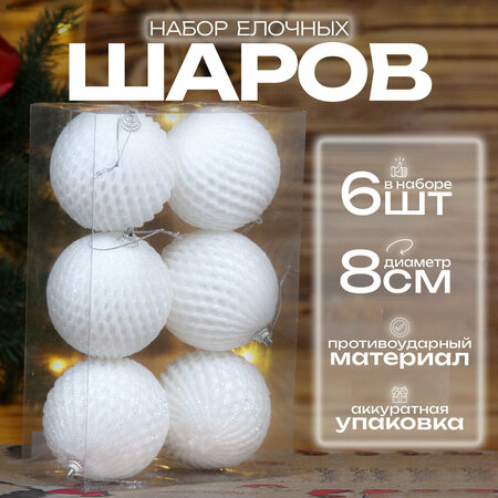 Елочные шары белые 8 см 6 шт, шары на елку набор, новогодние шары