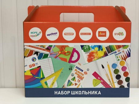 Набор канцелярских принадлежностей для будущего первоклассника. Упакован в красивый короб, который держит форму. Набор выполнен из качественных канцелярских принадлежностей, весь товар сертифицирован. В набор входит: - Альбом для рисования - Цветная бумага 8 листов 16 цветов - Цветной картон 7 листов 7 цветов - Карандаши цветные, 12 цветов, заточенные - Пластилин классический , 6 цветов, 120 г, стек - Краски акварельные 12 цветов (в прозрачной упаковке с подвесом) - Фломастеры пифагор, 6 цветов, вентилируемый колпачок - Кисть пони, ArtSpace, круглая №01 - Ручка шариковая STAFF "Basic BP-01", письмо 750 метров, синяя, длина корпуса 14 см (2 шт.) - Ручка шариковая STAFF "Basic Budget BP-04", зелёная, линия письма 0,5 мм - Ручка шариковая STAFF "Basic BP-01", красная - Карандаш чернографитный, "Grass", НВ, с резинкой, пластиковый (2 шт.) - Ножницы 135 мм, с линейкой, ассорти - Папка-конверт с кнопкой А5+ - Обложки 210*350 для дневников и тетрадей -10 шт. - Тетрадь зелёная обложка 12 л, клетка с полями (5 шт.) - Тетрадь зелёная обложка 12 л, косая линия с полями ( 5 шт.) - Расписание уроков и звонков А4, пифагор, "Окружающий мир", ассорти - Ластик, белый, прямоугольный - Линейка деревянная 15 см. - Клей-карандаш 8 грамм - Стакан-непроливайка - Короб набор первоклассника универсальный Набор первоклассника Море Рюкзаков 43 предмета "Классик" благодаря продуманному дизайну коробу отлично подойдет как мальчикам, так и девочкам, а грамотно продуманное содержимое одной покупкой закроет вопрос приобретения всех основных канцтоваров и школьных принадлежностей для будущего первоклассника. Отличный подарок на выпускной в детском саду или другой праздник!