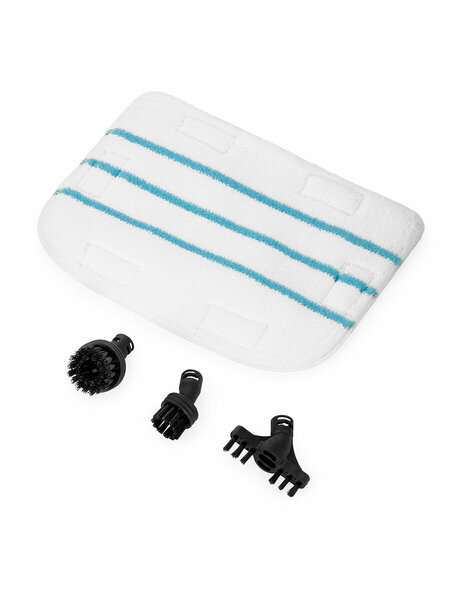 Тряпка для пола — 1 шт. Большая круглая нейлоновая щетка — 1 шт. Малая круглая нейлоновая щетка — 1 шт. Плоская нейлоновая щетка — 1 шт.