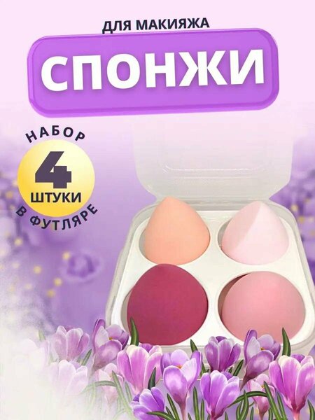 Набор спонжей для макияжа, с футляром для бьютиблендеров, 4шт