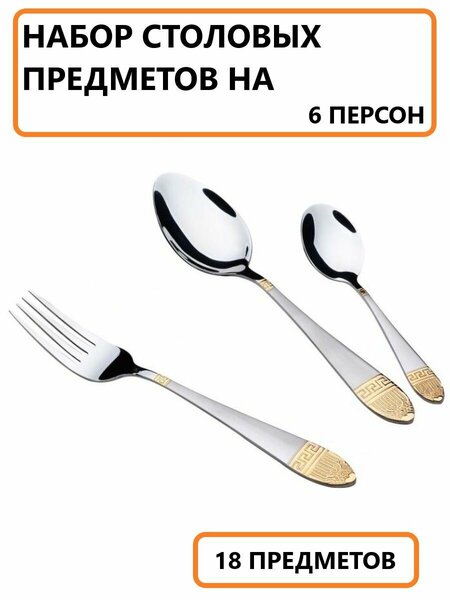 Набор столовых приборов 18 предметов на 6 персон. Столовые приборы набор: ложки столовые - 6шт (длина - 20см), вилки столовые - 6шт (длина - 20см), ложки чайные - 6шт (длина - 14см). Набор столовых предметов выполнен из высококачественной нержавеющей стали, очень прочные, не гнутся, имеют длительный срок службы, отлично сохраняют эксплуатационные свойства. Пищевая нержавеющая сталь не имеет запаха и сохраняет вкус и аромат продуктов натуральными. Приборы для кухни с выпуклостью в симметричном формате и тщательно закругленными краями, обеспечивающими больший комфорт в использовании. Утонченные, привлекательные изогнутые линии приборов объединяют в себе отличную эргономику и изысканный внешний вид. Дизайн воссоздан по всем канонам стиля, не подвластному времени и моде. Глянцевая отделка. Набор посуды столовой подходит на каждый день и для праздничной сервировки стола. Их можно мыть ежедневно в посудомоечной машине. Приборы столовые вилки ложки в комплекте. Набор столовых приборов. Такая посуда является идеальным подарком для любого праздника: на день рождения, свадьбу, Новый год. Этот подарок может быть как мужской, так и женский. Он идеален для молодожен или супругов, проживших вместе долгие годы. Это будет прекрасный презент для мужчин, женщин! Вы можете сделать приятный сюрприз и подарить этот набор столовых предметов парню, учителю, коллеге, брату, мужу, папе, дедушке, жене, бабушке, мужчине, другу, сестре, девушке или любимой женщине. Подарочный набор можно включить в походный инвентарь, ведь вилки, ложки и ножи из нержавеющей стали удобнее, чем одноразовые. Чайные ложки, входящие в набор, прекрасно подойдут, чтобы размешивать черный чай, а кухонные ножи и вилки можно использовать не только дома, но и отвезти на дачу. Также, они подойдут для приготовления еды, например супа, во время отдыха на природе или похода. Кухонные и кулинарные принадлежности для сервировки стола - это лучший подарок.