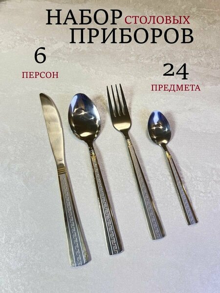 Столовые приборы это идеальный выбор для тех, кто ценит качество, стиль и удобство. Набор столовых приборов включает 24 предмета и рассчитан на 6 персон он изготовлен из пищевой нержавеющей стали . Удобно лежат в руке взрослых и детей . Приборы из нержавеющей стали прочные и долговечные . Комплект из 24 предметов : вилки - 6шт. ножи - 6шт, столовые ложки для супа - 6шт. чайные ложки кофейные - 6шт. Классический дизайн , удобная ручка , зеркальная полировка подходит под любой интерьер кухни . Рекомендуем использовать щадящие моющие средства без активного кислорода ( кислородных отбеливателей ) и не замачивать столовые приборы надолго в воде . Данный набор изысканно дополнит белую посуду , черные тарелки и другие цвета сервиза . Комплект столовых предметов для кухни и сервировки стола подходит не только в дом на каждый день или для любого праздника , но и в роли ресторанной утвари для кафе и ресторана . Большой комплект столовых принадлежностей удобно использовать для отдыха на природе , дачи , для похода , кемпинга или в походной кухне , на семейный пикник или на любое торжество . Набор ложек и вилок это надежный инвентарь для дома и кухни . Купить интересную сервировочную посуду из нержавейки высокого качества приятно для себя и всей семьи , в подарок на день рождения маме , папе , подруге или другу , сестре и брату на новоселье или юбилей , это прекрасный презент женщине ( лучшей подруге ) или мужчине ( другу ) . Их можно мыть ежедневно в посудомоечной машине. Приборы столовые вилки ложки в комплекте. Набор столовых приборов. Коллекция ресторанных ложек и вилок, которые станут прекрасным дополнением к Вашей кухне и создадут особую атмосферу за столом.