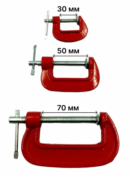 Набор струбцин G-образных предназначен для фиксации деталей при выполнении столярных и ремонтных работ. Резьбовой шток из углеродистой стали с увеличенной прижимной губкой позволяет осуществлять устойчивую фиксацию заготовки. Инструменты такого типа часто применяются при обработке металлических заготовок. Для защиты поверхности деревянных деталей от повреждения рекомендуется использовать накладки или подкладывать под губки мягкие бруски. Подвижные зажимы обеспечивают надежную фиксацию деталей, что делает работу с набором быстрой и удобной. Набор универсален тем, что в комплекте сразу три струбцины разных размеров. Незаменимы для проведения столярных, слесарных работ. Пригодятся для работ в частном доме, так и для профессиональной деятельности.