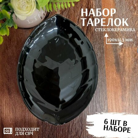 Набор тарелок десертных из стеклокерамики 6 штук форма Листок подходит для СВЧ