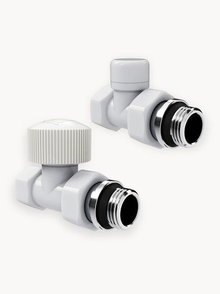Термостатические наборы серии Design поставляется в комплектации: клапан термостатический для установки на подающий трубопровод, запорный клапан для установки на обратный трубопровод.