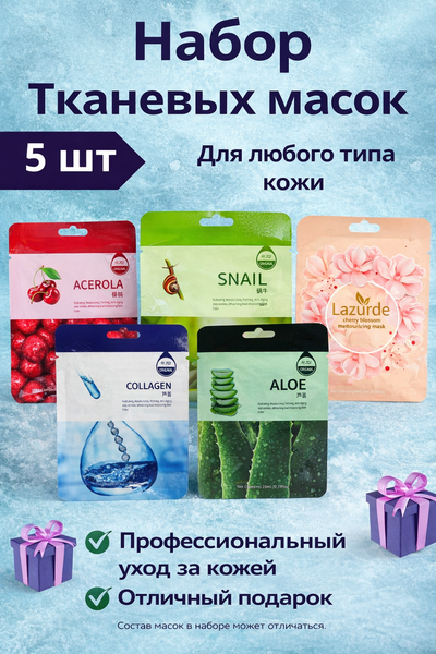 {"widgets":{"@card/UniversalPromoBadge":{"/content/page/fancyPage/defaultPage/universalPromoBadge":{"wrapperProps":{"margins":{"bottom":"3"}},"initialTime":1771243549239,"offerComposeId":"2137540169338571730"}}},"meta":{"/content/page/fancyPage/defaultPage/universalPromoBadge":{"name":"@card/UniversalPromoBadge"}},"collections":{"productServiceSnippets":{"2137540169338571730":{"productSnippet":{"snippetId":"document_id","type":"MODEL_CARD_LAYOUT","productPayload":{"snippetStyle":"NORMAL","title":{"value":"Набор тканевых масок для лица, комплекты из 5 шт"},"badges":{},"price":{"actualPrice":{"amount":{"intPart":15000,"currency":"UZS"},"style":"BLACK","type":"WITHOUT_DISCOUNT"}},"gallery":{"mediaItems":[{"picture":{"baseUrl":"https://avatars.mds.yandex.net/get-mpic/18677324/2a0000019bc135abb8dc157a548e7b35acbd/","width":1024,"height":1536,"title":"Набор тканевых масок для лица, комплекты из 5 шт"},"type":"IMAGE"},{"picture":{"baseUrl":"https://avatars.mds.yandex.net/get-mpic/15584507/2a0000019948491f38f73203445d65bbb61d/","width":1080,"height":1440,"title":"Набор тканевых масок для лица, комплекты из 5 шт"},"type":"IMAGE"},{"picture":{"baseUrl":"https://avatars.mds.yandex.net/get-mpic/15283662/2a0000019bc12c82dcef17f7b67744f657cf/","width":1024,"height":1536,"title":"Набор тканевых масок для лица, комплекты из 5 шт"},"type":"IMAGE"},{"picture":{"baseUrl":"https://avatars.mds.yandex.net/get-mpic/16241877/2a0000019b416646c405b1e4b6bc320dc693/","width":1080,"height":1440,"title":"Набор тканевых масок для лица, комплекты из 5 шт"},"type":"IMAGE"},{"picture":{"baseUrl":"https://avatars.mds.yandex.net/get-mpic/17783564/2a0000019bc135abb8c206ea19bef57263a9/","width":1080,"height":1440,"title":"Набор тканевых масок для лица, комплекты из 5 шт"},"type":"IMAGE"}]},"wishlistButton":{"businessId":212038838,"mskuId":5008700996,"modelId":5007881094,"oskuId":5008700996,"offerId":"5mt-i8oquXczSpWiW9as8A"}},"baobabPayload":{"type":"offer","wareId":"5mt-i8oquXczSpWiW9as8A","modelId":5007881094,"marketSku":"5008700996","snippet_type":"product","isExpress":false,"price":15000,"hid":64690100,"shopId":431782,"shopSku":"MRKT-QSCUFY08","supplierId":212038837,"supplierType":3,"isUltima":false,"oskuId":5008700996,"snippetTheme":"GRID_FULL","stockCount":22,"promoLogJoinId":"b0d8b6aa9b75e64713c900ed3ceaa979/f02beb361e9d65c1"},"themeType":"GRID_FULL"}}}}}