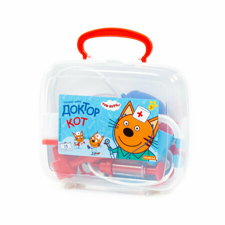 Теперь озорные котята из мультфильма «Три кота» будут радовать детей во время игр с набором доктора от фабрики «Полесье». Детские игрушки выделяются ярким дизайном, частью которого стали хвостатые персонажи из любимого мультсериала. «Три кота» рассказывают о повседневной жизни маленьких, но очень любознательных котят: Коржика, Компота и их младшей сестренки Карамельки. В состав набора «Три кота» «Доктор» входят: ножницы - 1 шт, очки - 1 шт, лупа - 1 шт, шприц - 1 шт, лоток для инструментов - 1 шт, ложечка - 1 шт, стетоскоп (для прослушивания сердца и лёгких) - 1 шт, тонометр (для измерения давления) - 1 шт, отоскоп (инструмент лор-врача) - 1 шт, молоточек - 1 шт, мерный стаканчик с крышкой - 1 шт, стаканчик - 1 шт, баночка - 2 шт.