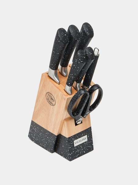 Набор кухонных ножей Vicalina: качество и функциональность Набор кухонных ножей Vicalina изготовлен из нержавеющей стали, что обеспечивает их долговечность и устойчивость к коррозии. Благодаря этому, ножи сохраняют свою остроту и внешний вид на протяжении долгого времени. В комплект входят 3 ножа: поварской, разделочный и универсальный. Каждый из них имеет свое предназначение и позволяет выполнять различные кулинарные задачи. Поварской нож используется для нарезки мяса, рыбы и овощей, разделочный – для разделки мяса и рыбы, а универсальный – для нарезки хлеба, овощей и фруктов. Ножи Vicalina имеют удобные ручки, которые обеспечивают надежный и комфортный захват. Это позволяет избежать скольжения рук во время работы и снижает риск получения травм. Набор кухонных ножей Vicalina станет отличным выбором для тех, кто ценит качество, функциональность и удобство в использовании.