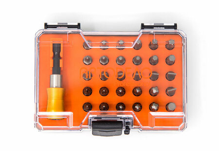 Набор вставок бит 31 предмет Professional Вставки изготовлены из высококачественной инструментальной стали S2 с последующей закалкой до твёрдости 55-60 HRC и защищены от коррозии методом фосфатирования. Износостойкие, пригодны для долговременного использования при максимальных нагрузках. Набор идеально подходит для работы с электрическим шуруповёртом и укомплектован магнитным адаптером с системой фиксации вставок. Комплектация набора: Адаптер для вставок магнитный .1/4 -1/4 Вставки 1/4 TORX. Т10, Т15, Т20, Т25, Т27, Т30 Вставки 1/4 шестигранные.1.5, 2, 2.5, 3,4, 5, 6 мм Вставки 1/4 шлицевые.3,4,4.5, 5, 5.5, 6, 7 мм Вставки 1/4 Phillips. РН0, PH1, РН2, РНЗ, РН4 Вставки 1/4 Pozidrive. PZ0, PZ1, PZ2, PZ3, PZ4