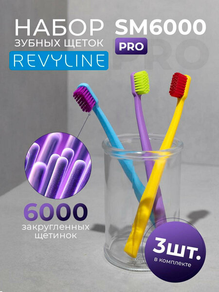 Представляем Revyline SM6000 PRO № 2: набор зубных щеток средней жесткости в удобной косметичке. Он обязательно станет полезным маленьким подарком для дома, ведь целых 3 зубные щетки может использовать как целая семья, так и один человек в течение долгого времени. В разработке серии SM6000 принимали участие ведущие стоматологи России. В результате получились щетки с уникальной чистящей поверхностью: 6 000 гибких щетинок с закругленными кончиками эффективно удаляют налет и остатки пищи с зубов, мягко полируя эмаль. Зубная щетка средней жесткости обладает компактными размерами чистящей головки, благодаря чему удобно чистить даже труднодоступные участки: дальние зубы, придесневую линию, межзубные промежутки. Материал щетины — премиальный нейлон DuPont. Ручка выполнена из пропилена. Ее эргономичная форма помогает чистить зубы под правильным углом, избегая лишнего давления на эмаль. Обращаем ваше внимание: цвета щёток в наборе в ассортименте и могут отличаться от представленных на фото. Стоматологи выбирают Revyline! Товар одобрен Российским медицинским университетом им. Н. И. Пирогова и Независимой Ассоциацией Пародонтологов (НАП). Проверенный бренд в профессиональном сообществе: Продукция бренда создается при участии стоматологов и рекомендована экспертами. Мы сотрудничаем с десятками тысяч докторов и с тысячами клиник как в России, так и за ее пределами.