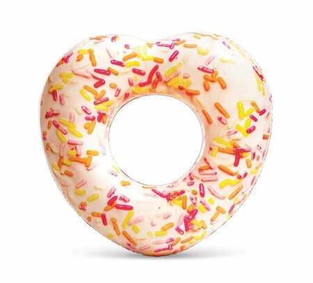 Дизайн этого надувного круга представляет собой сердце в виде пончика с яркой присыпкой по всей поверхности, что создает привлекательный внешний вид.