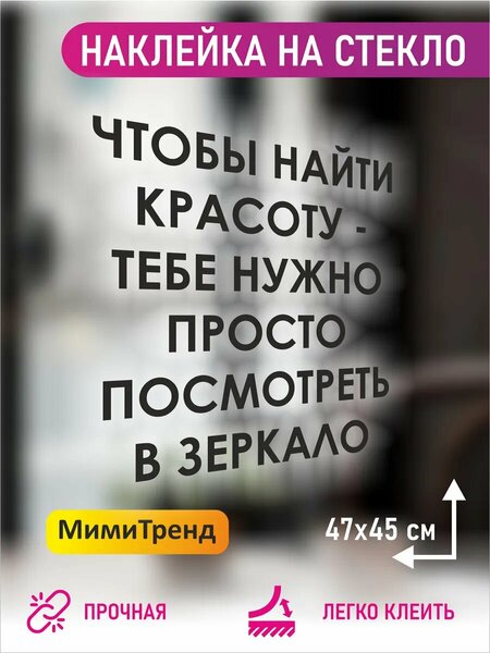 {"widgets":{"@light/ProductM2bEdoOnlyBadge":{"/content/page/fancyPage/defaultPage/m2bEdoOnlyBadge":{"wrapperProps":{"margins":{"top":"2"}},"isM2bEdoOnlyEnable":false}}},"meta":{"/content/page/fancyPage/defaultPage/m2bEdoOnlyBadge":{"name":"@light/ProductM2bEdoOnlyBadge"}},"collections":{"views":{"defaultOffer":"vi_1689212205147791188_bi_1986935339245467705"},"viewItem":{"vi_1689212205147791188_bi_1986935339245467705":{"id":"vi_1689212205147791188_bi_1986935339245467705","composeId":"1689212205147791188","buyOptionId":"bi_1986935339245467705"}},"buyOption":{"bi_1986935339245467705":{"id":"bi_1986935339245467705","title":"Наклейка чтобы найти красоту - тебе","offerId":"rq9vV_NgLa0VmqBN83aDpQ","slug":"nakleyka-chtoby-nayti-krasotu---tebe","trackingLinks":{"cpa":"/jb_aoGi8r_Swr0sUoasYircCXu7d","promotionUrl":"/RfDHHCAGIJ8ET6FWyeIRGIB5Nrdq"},"skuId":"5074163592","productId":"5194108831","categoryId":"5110759","navnodeId":"18054995","departmentId":"54422","showUid":"17720805404945366086906001","counterStep":1,"minimum":1,"maximum":50,"price":{"value":106136,"currency":"UZS"},"vendorId":"16644882","feeShow":"OTNDnItfwRMlLJby2gHopQB7-laPkaIWhY1DoMZA2wd4MMhHiS5SClWAeKim3ousQiAQfIkK2WMuBOtW8AvgfOyGHZLxRnGIANwGvDZrA6F7DgPnYHlOEBepV-jk716HdQ-w_njbAjyIfRNbpSG0bozFuxAoy1GdWCYOVVT8qiyuKEQUVHaw3Mb5KAHKScpOAB-IP82fsLHBWcIC5pBW0A2QWpf5lAmcBrYuAT_ByZaKP3nIA668Z0_FiI8MCB3ZFtY_FFa8n6tswsNbBzzgl7BB2YnZYH3KZdgngbiW973yrs1rqrsDh3jeS-uhMiQaUz4Szqwrz-s,","feedId":"34225428","feedOfferId":"34225428.dcmp-11913035872788264901","shopId":"431782","supplierId":"111079225","businessId":"111079226","supplierName":"МимиТренд","businessName":"МимиТренд","hasAnySize":false,"hasAnyDelivery":true,"benefitTypeCode":"waremd5","basePrice":{"value":208071,"currency":"UZS"},"promos":[{"key":"Ge5lQ6mbVC207QVdLcZTYQ","type":"unknown","shopPromoId":"price_increase_promo_111079225","anaplanId":"price_increase_promo_111079225","landingUrl":"https://market.yandex.ru/special/price-increase-promo-landing?shopPromoId=price_increase_promo_111079225"}],"flags":["isVisual","isFbs","isOnDemand","isCrossborder"],"analytics":{"warehouseId":"1320333","paymentType":"ANY","atSupplierWarehouse":true,"paymentMethodTypes":["BY_CARD_ONLINE","BY_CARD_TO_COURIER","IN_CASH"],"deliveryOptions":[{"deliveryType":"pickup","fromDate":1772944540,"toDate":1772944540,"priceInfo":{"value":0,"currency":"UZS"}},{"deliveryType":"pickup","fromDate":1772944540,"toDate":1772944540,"priceInfo":{"value":0,"currency":"UZS"}},{"deliveryType":"delivery","fromDate":1772944540,"toDate":1772944540,"priceInfo":{"value":0,"currency":"UZS"}}],"shopSku":"dcmp-11913035872788264901","placementType":"3P","ownMarketPlace":true,"shopSlug":"yandex-market","yandexBnplInfo":{"enabled":true},"promos":[{"key":"Ge5lQ6mbVC207QVdLcZTYQ","type":"unknown","shopPromoId":"price_increase_promo_111079225","landingUrl":"https://market.yandex.ru/special/price-increase-promo-landing?shopPromoId=price_increase_promo_111079225","isPersonal":false}],"hypeBadge":{"hasBadgeRare":false}},"deliveryType":"PICKUP","imageMeta":{"namespace":"mpic","groupId":16138826,"key":"2a0000019c04cd8f5c003b0a126cbc9f2162"}}},"market2Business":{"current":{"id":"current","isM2b":false}}}}