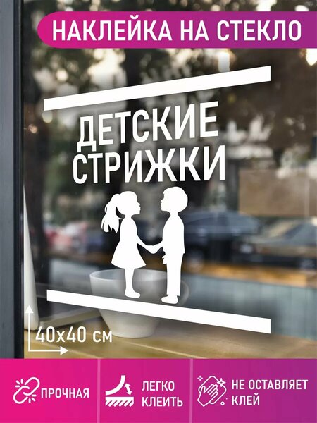 У нас вы можете купить пленку наклейка на окно "детские стрижки". Размер 50 х 50 см. Пленка предназначена как для наружного, так и внутреннего применения! Видеоинструкция легко поможет вам наклеить! Можно наклеить при в ходе в кабинет косметолога или салон красоты, наклеить на улице. Высокое качество немецкой пленки ПВХ позволяет клеить стикер на любую поверхность. Наклейке можно придумать и другое применение. Держится в течение длительного срока. Просто наклеить, легко снять. Стикер держится долго и не боится влаги, пыли и грязи. Подойдет для вашего бизнеса, салона, кабинета