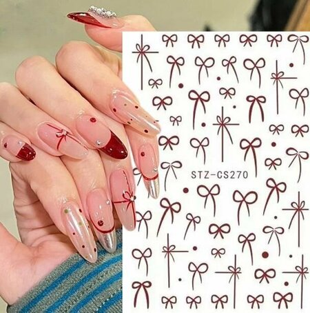 Стикеры для ногтей наносятся на любой фон, вырезанные, очень удобные в применении, наносятся легко и быстро, тонкая пленка не заметна на ногтях. Размер листа 9х6.5см. Слайдер для маникюра позволит сделать дизайн ногтей на тему: Бантики, банты; красные банты. Эти наклейки изготовлены из качественной бумаги и пленки, обеспечивая долговечность и удобство в использовании. Они предназначены для маникюра и педикюра, подходят для любых ногтей и идеально подойдут как для женщин, так и для детей.