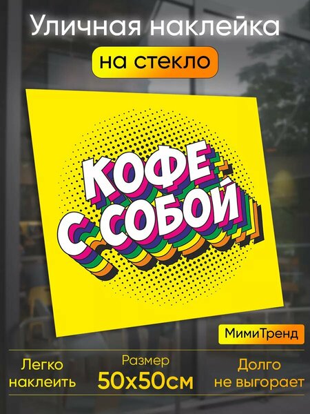 Наклейка кофе с собой. Открываете пекарню или магазин продуктов? Большая наклейка 48х25 см кофе с собой на окна вам идеально подойдет. Так же есть в профиле для вас баннеры -вывески для вашй пекарни или кофейни или магазина продуктов. Незаменимый декор. Наши наклейки изготовлены из прочного белого винила Oracal европейского качества. В наборе наклейка 1 штука, на прозрачной монтажной пленке для легкого монтажа наклейки. Легко крепить. Предназначена как для наружного, так и внутреннего применения. Можно нанести при входе. Высокое качество пленки позволяет клеить стикер на любую поверхность. Держится в течение длительного срока, не боится влаги, пыли и грязи. Просто наклеить, легко снять. Переходите в профиль, там вы найдете другие наклейки и баннера для вашего бизнеса. Клеить легко. 1. Добавьте на 1 литр 1 каплю моющего средства. 2. Распылите воду на окно, 3. Расположите пленку на ровной поверхности лицом в низ, снимите с пленки бумажную подложку и распылите воду на пленку. 4. Приложите пленку к поверхности и после выгоните аккуратно воду ракелем или пластиковой картой (предварительно оберните карту тканью) ВСЕ