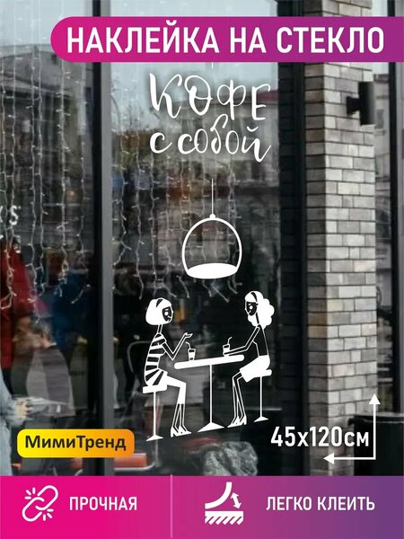 Наклейка кофе с собой. Открываете пекарню или магазин продуктов? Большая наклейка 45х120 см кофе с собой на окна вам идеально подойдет. Так же есть в профиле для вас баннеры -вывески для вашй пекарни или кофейни или магазина продуктов. Незаменимый декор. Наши наклейки изготовлены из прочного белого винила Oracal европейского качества. В наборе наклейка 1 штука, на прозрачной монтажной пленке для легкого монтажа наклейки. Легко крепить. Предназначена как для наружного, так и внутреннего применения. Можно нанести при входе. Высокое качество пленки позволяет клеить стикер на любую поверхность. Держится в течение длительного срока, не боится влаги, пыли и грязи. Просто наклеить, легко снять. Переходите в профиль, там вы найдете другие наклейки и баннера для вашего бизнеса.