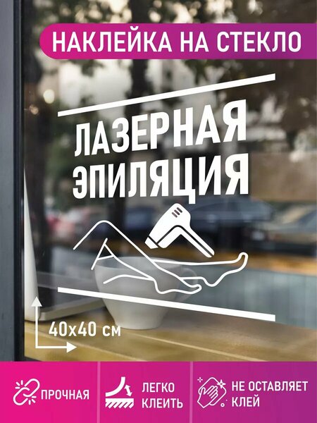 У нас вы можете купить пленку наклейка на окно "лазерная эпиляция". Размер 40 х 40 см. Пленка предназначена как для наружного, так и внутреннего применения! Видеоинструкция легко поможет вам наклеить! Можно наклеить при в ходе в кабинет косметолога или салон красоты, наклеить на улице. Высокое качество немецкой пленки ПВХ позволяет клеить стикер на любую поверхность. Наклейке можно придумать и другое применение. Держится в течение длительного срока. Просто наклеить, легко снять. Стикер держится долго и не боится влаги, пыли и грязи. Подойдет для вашего бизнеса, салона, кабинета