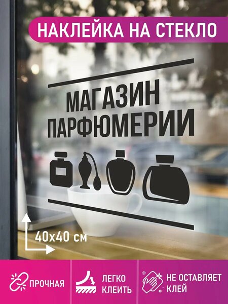 У нас вы можете купить пленку наклейка на окно "магазин парфюмерии". Размер 40 х 40 см. Пленка предназначена как для наружного, так и внутреннего применения! Видеоинструкция легко поможет вам наклеить! Можно наклеить при в ходе в кабинет косметолога или салон красоты, наклеить на улице. Высокое качество немецкой пленки ПВХ позволяет клеить стикер на любую поверхность. Наклейке можно придумать и другое применение. Держится в течение длительного срока. Просто наклеить, легко снять. Стикер держится долго и не боится влаги, пыли и грязи. Подойдет для вашего бизнеса, салона, кабинета