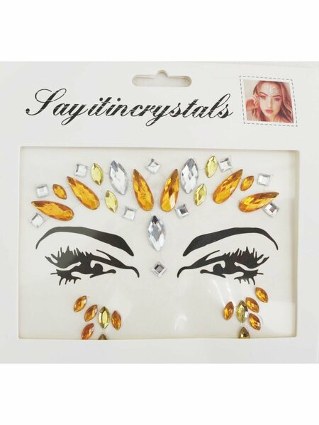 Наклейки Сфера Желтая- Серебро, для макияжа, многоразовые, на лицо, с кристаллами