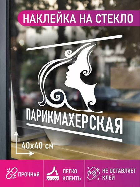 У нас вы можете купить пленку наклейка на окно "парикмахерская". Размер 50 х 50 см. Пленка предназначена как для наружного, так и внутреннего применения! Видеоинструкция легко поможет вам наклеить! Можно наклеить при в ходе в кабинет косметолога или салон красоты, наклеить на улице. Высокое качество немецкой пленки ПВХ позволяет клеить стикер на любую поверхность. Наклейке можно придумать и другое применение. Держится в течение длительного срока. Просто наклеить, легко снять. Стикер держится долго и не боится влаги, пыли и грязи. Подойдет для вашего бизнеса, салона, кабинета