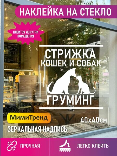 У нас вы можете купить зеркальную пленку наклейка на окно "стрижка собак и кошек груминг". Размер 40 х 40 см. Пленка предназначена как для наружного, так и внутреннего применения! Накладная графика придаст вашему бизнесу современный и профессиональный вид. Стикеры на витрину легко наносятся и снимаются, не оставляя следов. Видеоинструкция легко поможет вам наклеить! Можно наклеить при в ходе в кабинет косметолога или салон красоты, наклеить на улице. Высокое качество немецкой пленки ПВХ позволяет клеить стикер на любую поверхность. Наклейке можно придумать и другое применение. Держится в течение длительного срока. Просто наклеить, легко снять. Стикер держится долго и не боится влаги, пыли и грязи. Подойдет для вашего бизнеса, салона, кабинета! Инструкция: 1. Очистите поверхность от грязи и пыли. 2. Проведите по поверхности наклейки ракелем или обычной пластиковой банковской картой так наклейка нучше перейдет на поверхность! (на наклейку нанесена прозрачная монтажная пленка- она предназначена для переноса наклейки на поверхность). 3. Подверните с обратной стороны белую бумажную подложку на 3-4 см. и прислоните этой частью к поверхности. 4. Постепенно снимайте сзади бумажную белую подложку, и паралельно с лица проводите ракелем или картой по лицу наклейки. 5. После удалилите под острым углом с наклейки прозрачную монтажную пленку! Она нужна только для переноса наклейки!