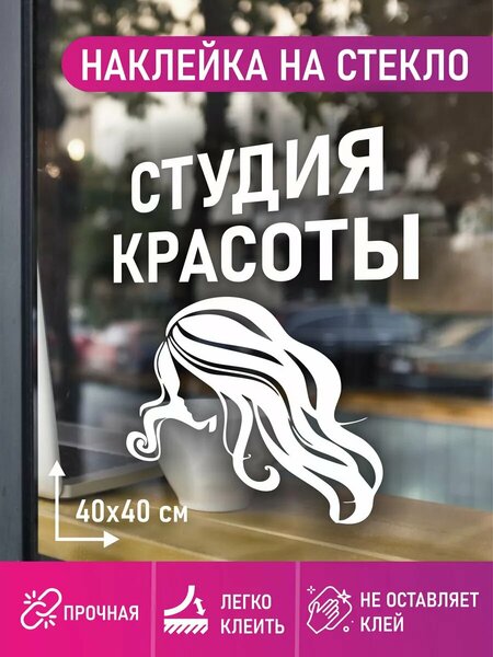 У нас вы можете купить пленку наклейка на окно "студия красоты". Размер 40 х 40 см. Пленка предназначена как для наружного, так и внутреннего применения! Видеоинструкция легко поможет вам наклеить! Можно наклеить при в ходе в кабинет косметолога или салон красоты, наклеить на улице. Высокое качество немецкой пленки ПВХ позволяет клеить стикер на любую поверхность. Наклейке можно придумать и другое применение. Держится в течение длительного срока. Просто наклеить, легко снять. Стикер держится долго и не боится влаги, пыли и грязи. Подойдет для вашего бизнеса, салона, кабинета! Инструкция: 1. Очистите поверхность от грязи и пыли. 2. Проведите по поверхности наклейки ракелем или обычной пластиковой банковской картой так наклейка нучше перейдет на поверхность! (на наклейку нанесена прозрачная монтажная пленка- она предназначена для переноса наклейки на поверхность). 3. Подверните с обратной стороны белую бумажную подложку на 3-4 см. и прислоните этой частью к поверхности. 4. Постепенно снимайте сзади бумажную белую подложку, и паралельно с лица проводите ракелем или картой по лицу наклейки. 5. После удалилите под острым углом с наклейки прозрачную монтажную пленку! Она нужна только для переноса наклейки!