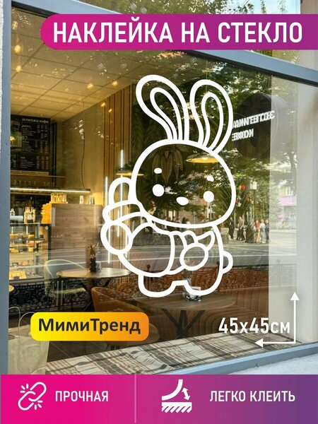 Наклейка Зайка. Открываете пекарню или магазин продуктов? Большая наклейка 45 на 45 см кофе и выпечка на окна вам идеально подойдет. Так же есть в профиле для вас баннеры -вывески для вашй пекарни или кофейни или магазина продуктов. Незаменимый декор. Наши наклейки изготовлены из прочного белого винила Oracal европейского качества. В наборе наклейка 1 штука, на прозрачной монтажной пленке для легкого монтажа наклейки. Легко крепить. Предназначена как для наружного, так и внутреннего применения. Можно нанести при входе. Высокое качество пленки позволяет клеить стикер на любую поверхность. Держится в течение длительного срока, не боится влаги, пыли и грязи. Просто наклеить, легко снять. Переходите в профиль, там вы найдете другие наклейки и баннера для вашего бизнеса.