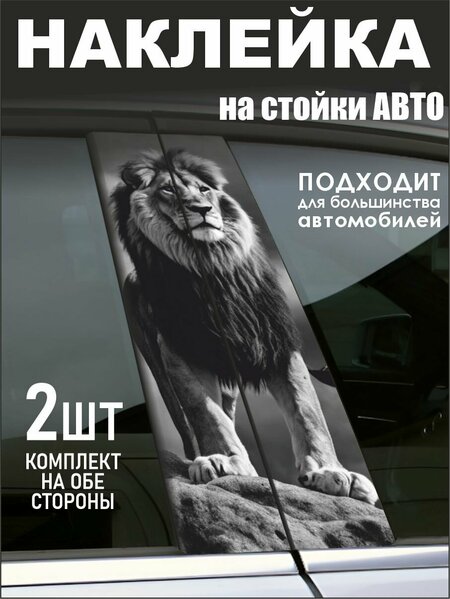 Наклейки на стойки "Лев черно-белый" (2 шт, 50х20 см) – Стиль и Характер для Вашего Авто! Придайте своему автомобилю неповторимый вид с элегантными черно-белыми наклейками "Лев"! Этот стильный аксессуар станет ярким акцентом, подчеркивающим вашу индивидуальность и любовь к мощным образам. Что вы получаете: