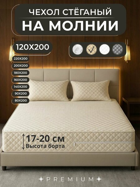Наматрасник 120х200 стеганый чехол на матрас на молнии высота борта 17-20 см.