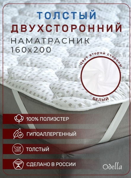 Стеганый наматрасник, изготовлен из мягкого материала микрофибра. Главная функция – защита матраса от пыли, пятен и механических повреждений, увеличивая срок службы матраса. Не шуршит, не скользит, тем самым не доставляя неудобств во время сна. Пропускает воздух, не накапливает запахи, приятен на ощупь, не электризуется. Такой матрасник идеально подходит как для детей, так и для взрослых. Двухсторонний чехол дает возможность пользоваться любой стороной изделия и наслаждаться здоровым сном. Усиленный бортик по периметру топпера придает дополнительную прочность и эстетичный внешний вид. Наполнитель, собственного производства Холлотерм - аналог лебяжьего пуха плотностью 230 г/м2. Равномерно распределяется по всей рабочей площади изделия, не сбиваясь в комки и сохраняя местоположение на протяжении всего срока службы. По свойствам схож с натуральным материалом, однако имеет значительные преимущества: гипоаллергенный, долговечный, быстро сохнет, сохраняет форму после частых стирок. За счет крупной стежки у наполнителя больше пространства для распушивания. Матрасник 200х160 становится объемный и воздушный, придает дополнительную мягкость, помогает сгладить небольшие неровности на матрасе. Удобные и толстые резинки 4 см по углам хорошо тянутся до высоты матраса 30 см и надежно фиксируют защитный топер во избежание смещения под матрасника с поверхности матраса, а также позволяют легко и быстро закрепить намотрасник на матрасе. Вы можете быть уверены, что топер 160 на 200 останется на месте даже при активных движениях во время сна. Имеет стильный принт, который подойдет для любого интерьера и станет модным дополнением вашей спальни. Чехол 160 200 подходит для двуспальных (2 спальных), кроватей, а также для диванов и кушеток. Для того чтобы определить, какой размер топпера подходит именно Вам, следует измерить ширину и длину спального места по крайним точкам. Параметры матраса и обычного матрасника должны максимально совпадать. Рекомендуемая стирка при температуре не выше 30 градусов. Накладку можно стирать в стиральной машине. Не требует глажки. Производится на современном оборудовании в России. Мы гарантируем качество, долговечность и надежность нашего домашнего текстиля!