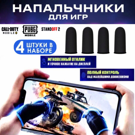 Напальчники для телефона - это аксессуар, который повышается чувствительность экрана и скорость отклика, он выведет качество вашей игры на новый уровень. Напальчники - триггеры подходят для любых игр на мобильном телефоне, планшете, геймпаде, консоли и игровой приставке. Сенсорные напальчники совершенно универсальны, эластичны и подходят на любой размер пальчиков, они подойдут как и для мужской так и женской руке. Напальчники для телефона изготовлены из высококачественного углеродного волокна, ультратонкие. Защищают от запотевания пальцев, позволяют улучшить навыки игры и придают улучшенное скольжение. Помогают вам совершенствоваться при прицеливании и стрельбе. Полностью сенсорный и высокочувствительный материал, позволит вам более эффективно использовать игровой потенциал. Идеально подходит для игр, в том числе для PUBG, COD, SO2, Genshin Impact, Among Us, Brwal Stars. Цвет напальчников черный, цвет окантовки (цветной полосы) может отличаться от представленного на фото, цвета окантовки могут быть: черный, желтый, оранжевый, синий. Выбор цвета окантовки приходят рандомно. Возможности выбрать конкретный цвет нельзя.