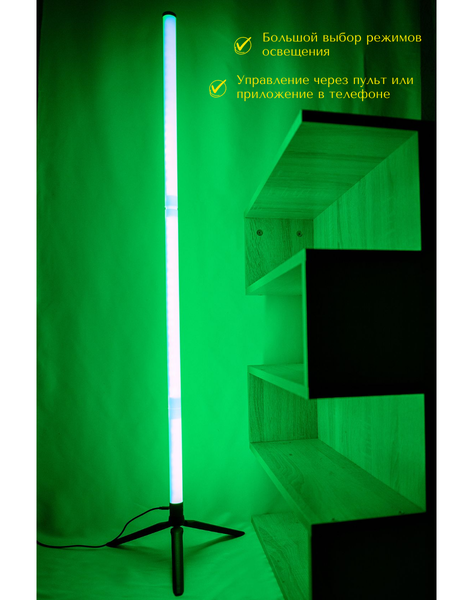 Напольный RGB светильник - это прекрасный выбор для декоративного освещения комнаты в вашей квартире или офисе. Светильник оснащен светодиодными RGB лентами, которые обеспечивают эффектное освещение помещений. Благодаря большому выбору режимов подсветки, вы при помощи пульта управления или приложения в телефоне сможете создать уютную и комфортную атмосферу в любом помещении. Светильник имеет высоту 132 см и устанавливается на пол, что обеспечивает большую площадь подсветки вашего интерьера. Плафон изготовлен из пластика белого цвета, основание - тренога черного цвета. Подключается к электросети USB-кабелем через USB-адаптер. Гарантия 1 год. Напольный светильник - отличный подарок близким, друзьям и коллегам!