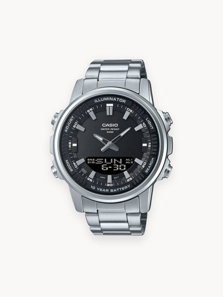Достоинства:Красивый дизайн, минимализм, утонченность Недостатки:Плоховато видно электронный дисплей Комментарий:Часы очень понравились, черный циферблат идеально сочетается с серебристым браслетом, циферблат имеет идеальный диаметр (средних размеров).