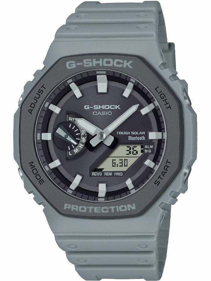Противоударные кварцевые наручные часы на солнечной батарее Casio GA-B2100-2A коллекции G-Shock с модулем Bluetooth Smart. Тонкий корпус для данной коллекции — 11.9 мм. Калибр механизма — 5689. Аккумулятор данной модели заряжается от любого источника света. Срок работы аккумулятора с полным зарядом — около 6-ти месяцев. Примерный срок службы аккумулятора — 10 лет. Имеется режим энергосбережения (дисплей гаснет для экономии энергии, когда часы остаются в темноте) и индикатор уровня заряда аккумулятора. С помощью технологии Bluetooth Smart данная модель имеет возможность поддерживать связь с системами IOS и Android. Возможности Bluetooth в данной модели: c помощью специального приложения CASIO WATCHES возможно установить время в конкретном городе (300 городов), установить время сигнала будильника, воспользоваться секундомером, установить точное текущее время, а также в случае потери смартфона возможно воспроизвести на нем сигнал. Функциональность данной модели: отображение времени в 12-часовом или 24-часовом формате; режим сохранения энергии; индикатор уровня заряда аккумулятора; индикация даты и дня недели; возможность установки индикации дня недели на одном из 6 языков; ежедневная автоматическая корректировка точного времени по Bluetooth (4 раза в сутки); автоматический календарь до 2099 года, функция летнего времени (DST), мировое время 38 городов (38 часовых поясов), 5 независимых будильников, сигнал начала часа, секундомер с точностью 1/100 секунды и измерением до 23 часов 59 минут 59,99 cек, таймер обратного отсчета (диапазон времени 60 минут), двойная диодная подсветка циферблата (Super Illuminator) с возможностью выбора времени свечения (1.5 или 3 секунды) + необритовое (Neobrite) покрытие на стрелках для длительного послесвечения в темноте, функция поиска телефона - можно включить тоновый сигнал на телефоне, что позволит быстро найти телефон, функция выключения звука нажатия кнопок (Mute). Функция сдвига стрелок в нейтральное положение для удобства обзора цифровой индикации. Корпус усилен углеродным волокном, изготовленным по технологии Carbon Core Guard. Водонепроницаемость WR200 (20 атм). Размеры корпуса: (ШxВxТ) 45.4x48.5x11.9 мм. Гарантийный срок — 3 года (1 год от производителя + 2 года от магазина).