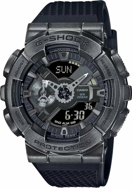 Японские мужские часы. Коллекция G-SHOCK. G-Shock. Дизайн модели вдохновлен научно-фантастическим миром. Противоударный корпус защищает механизм от ударов и вибрации. Защищены от магнитных полей. Циферблат подсвечивается светодиодом. Настраиваемое послесвечение 1,5 или 3сек. Цвет подсветки: белый. Необритовое светонакопительное покрытие обеспечивает длительное послесвечение в темноте даже после кратковременного нахождения на свету. • 12-ти и 24-х часовой формат времени. • Секундомер с точностью показаний 1/100с и временем измерения 1000ч. SPLIT-хронограф. Таймер обратного отсчета от 1мин до 24ч. • Мировое время – 48 городов (31 часовой пояс), всемирное координированное время (UTC). Функция включения/отключения летнего времени. Переключение между домашним и мировым временем. • Функция отключения/включения звука. • Батарейка рассчитана на 3 года. • Задняя крышка крепится на 4-х винтах. • Ремешок с классической застежкой и системой быстрой замены. Тип механизма: кварцевый. Корпус: сталь с IP покрытием, пластик. Циферблат: черный. Браслет: пластиковый. Водозащита: 200WR. Подсветка: Neobrite, светодиодная. Звуковой сигнал: 5 будильников, один с функцией Snooze, ежечасный сигнал. Стекло: минеральное. Календарь: автоматический: число, день недели, месяц (до 2099г). Габаритные размеры: 48,8х51,9мм, толщина 16,9мм, вес 93г.