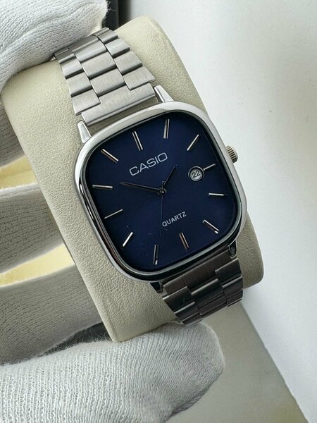 Элегантные кварцевые часы Casio с квадратным корпусом, черным циферблатом и металлическим браслетом. Идеально подойдут для делового и повседневного стиля.