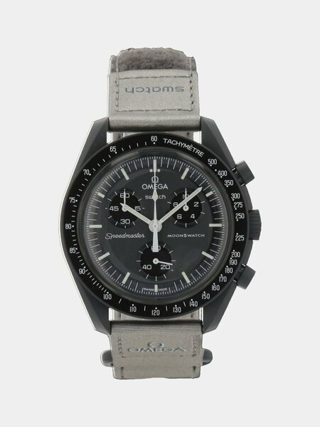 Omega x Swatch Speedmaster MoonSwatch — это современный и универсальный наручный часы, вдохновлённые легендарной моделью “Moonwatch”. Корпус выполнен из биокерамики, что делает его лёгким, прочным и комфортным в носке. Классический чёрный цвет придаёт часам элегантный и стильный вид. Основные особенности модели: Функция хронографа – удобно для спорта и повседневного использования; Тахиметрический безель – возможность измерять скорость; Кварцевый механизм – точность и надёжность; Удобный ремешок – мягкий, лёгкий и долговечный;
